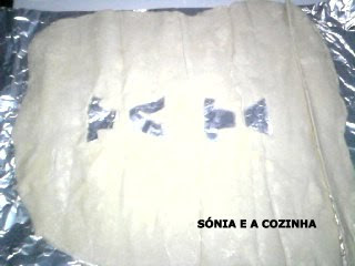 Levar ao forno pré-aquecido a 220ºC durante 20 minutos e pincelar com 1 ovo cozido. Como a minha massa estava ainda um pouco congelada foi a cozer dentro do papel de alumínio em que foi congelada.