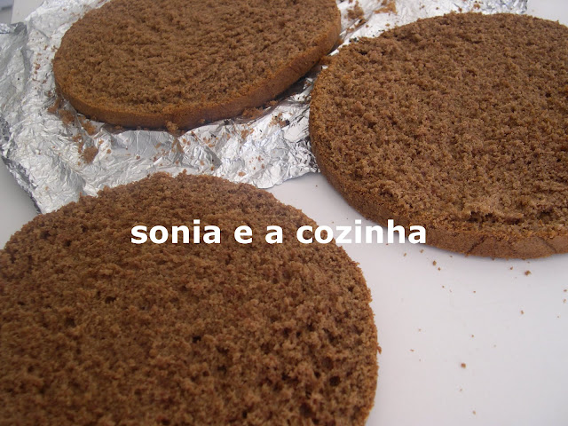 Barrar o bolo por cima e em toda a volta com o creme de chocolate.